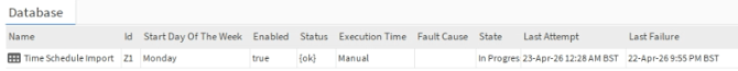 This creates a read only copy of the Trend schedule in the Niagara station. This schedule cannot be edited directly in Niagara but will reflect any changes made within the Trend controller either via SET or the controller web interface.