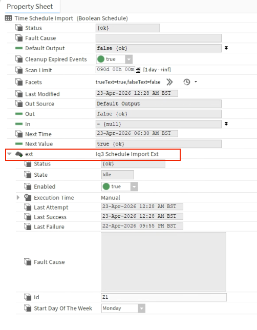 - Navigate to the Iq3 Schedule Import Ext within the schedule