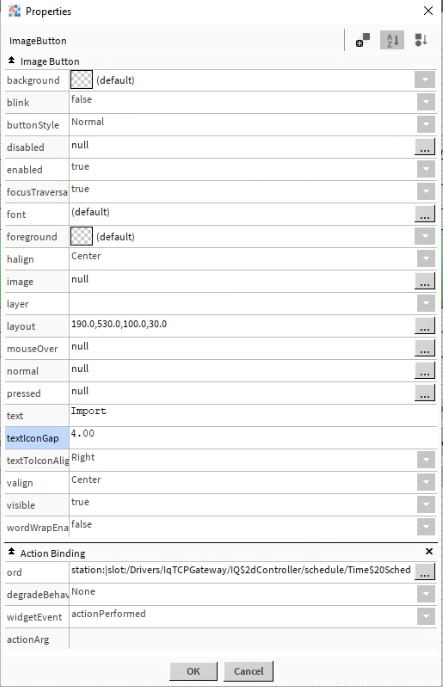 For example: station:|slot:/Drivers/IqTCPGateway/IQ$2dController/schedule/Time$20Schedule$20Import/ext/execute