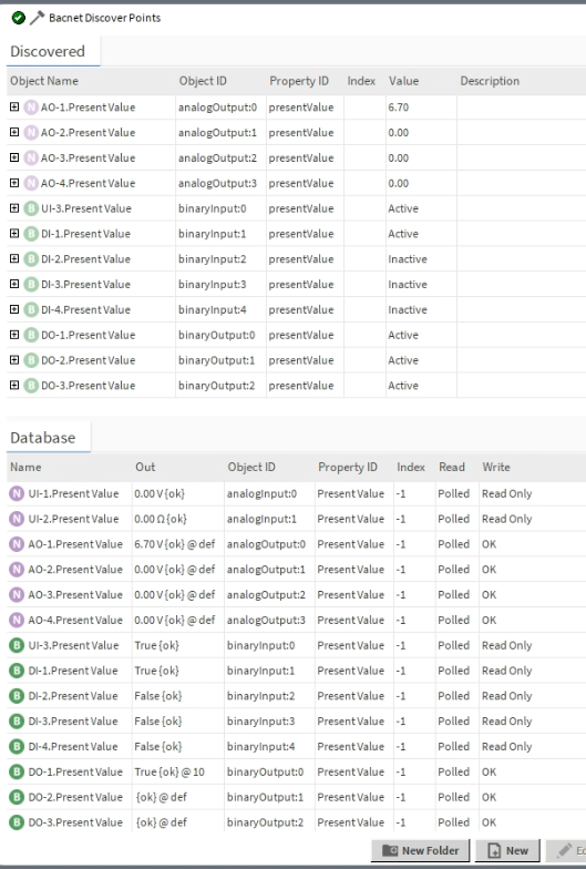 To which a simple BACnet discovery will display the objects exposed within the gateway.