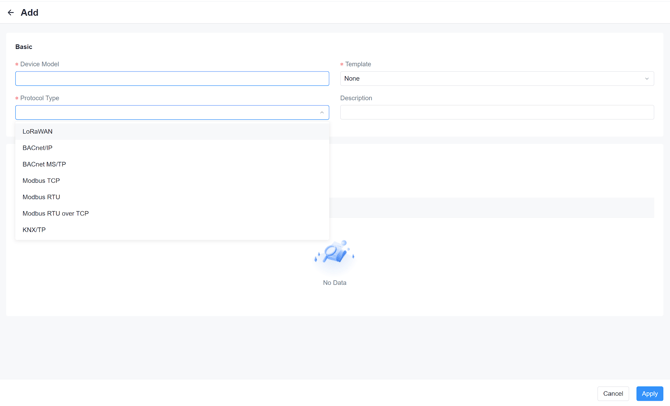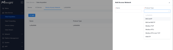 1. Go to:Data Service > Data Acquisition > Device > Manually Add