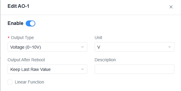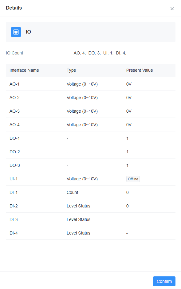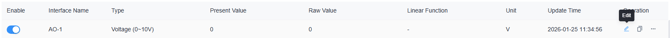 To edit IO parameters, click the edit icon next to the IO point you want to change.
