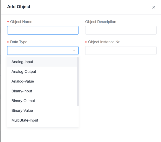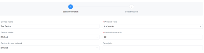 3. Then add the device Objects, including:
