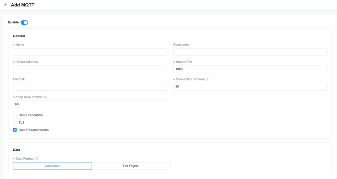 Data Service > Data Forwarding > Add